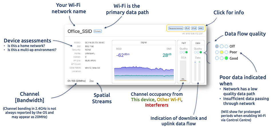 The Wi-Fi Dashboard is where the real-time Wi-Fi information is displayed as the logs are parsed.