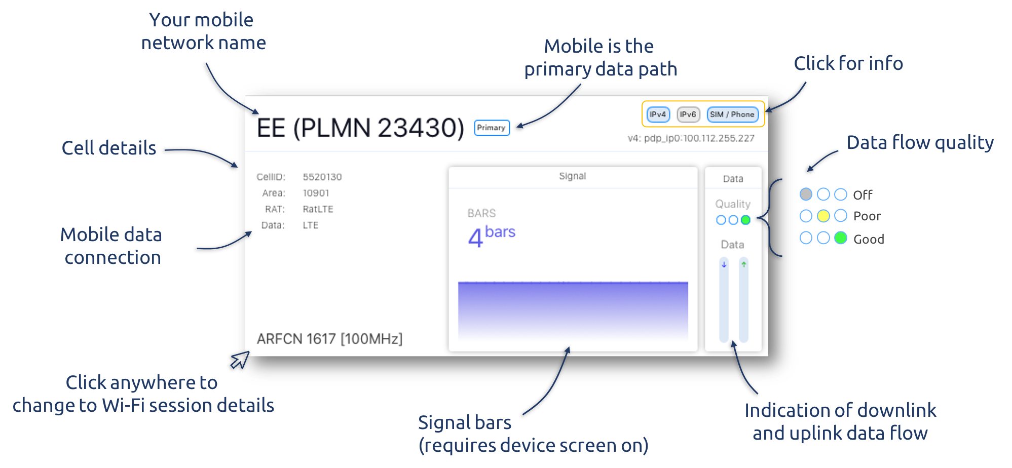 The default is the Cell Dashboard. It is very similar to the Wi-Fi dashboard. Take a look around.